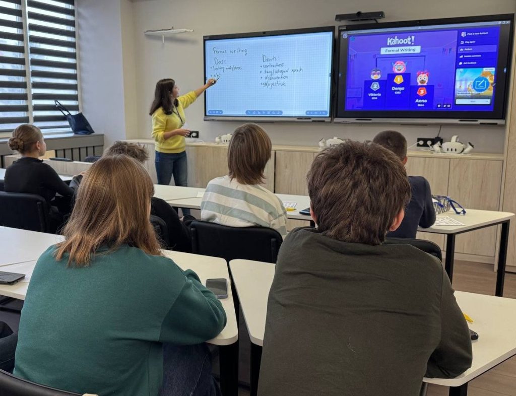 Під час заняття “STEM English: Pitching Lab” з Вікторією Коробій учасники після короткої розминки у форматі round robin шляхом симуляції інтерв’ю при працевлаштуванні закріпили знання, здобуті на попередньому занятті. Далі, у формі інтерактивної гри на платформі Kahoot, вони розмежували характерні риси офіційного стилю мовлення в англійській мові. Опрацювавши приклад бізнес-пропозиції, слухачі визначили її структурні елементи, типові сполучні фрази та найбільш уживані ділові вирази. На завершення учасники створили власні пропозиції щодо покращення благоустрою шкільної території.