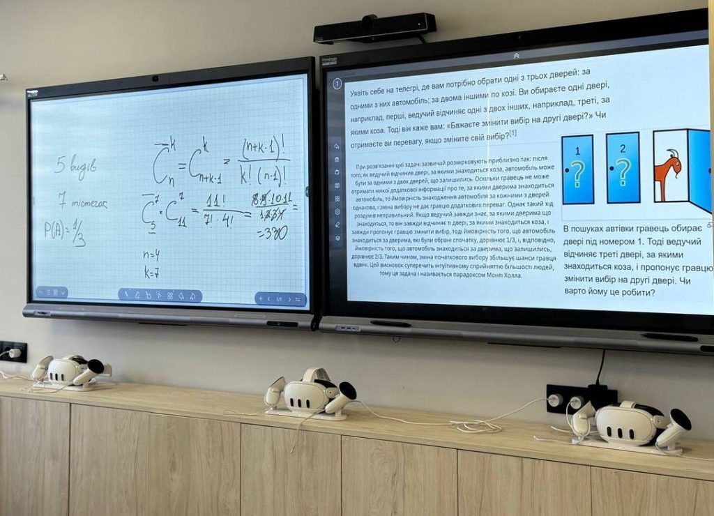 Також школярі мали змогу зануритися у світ математичної статистики та теорії ймовірностей разом з Оксаною Башуцькою. Під час заняття вони досліджували парадокс Монті Холла – задачу, що демонструє, як математична логіка може суперечити інтуїтивним судженням. Використовуючи інтерактивні панелі, учасники аналізували формули, комбінації та експериментально перевіряли результати, переконуючись, що навчання може бути водночас науковим і захопливим.