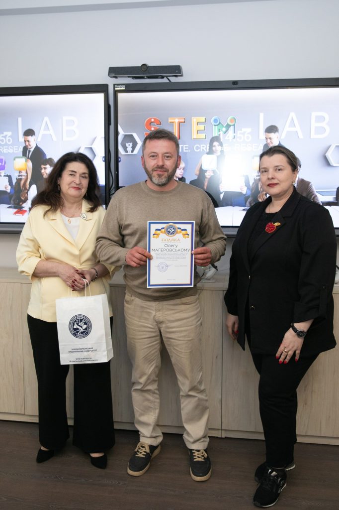 Разом із директором навчально-наукового центру комунікацій, науковим керівником науково-дослідної лабораторії STEM-освіти, к.п.н., доцентом кафедри економічної кібернетики та інформатики та кафедри фінансів ім. С. І. Юрія ЗУНУ Оксаною Коваль, проректор вручив дипломи та грамоти переможцям і призерам олімпіади.