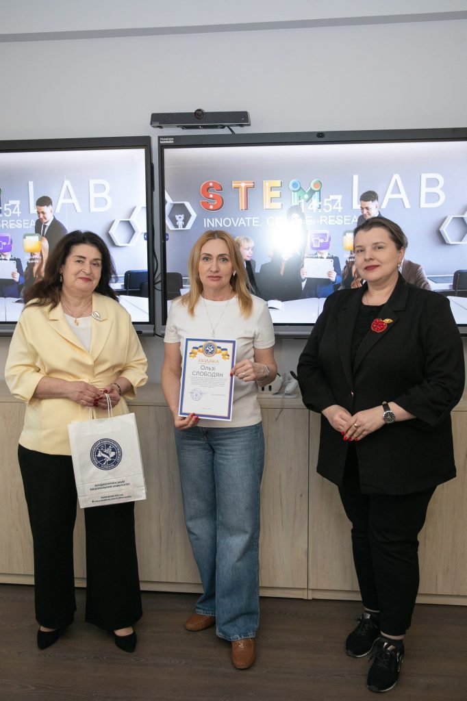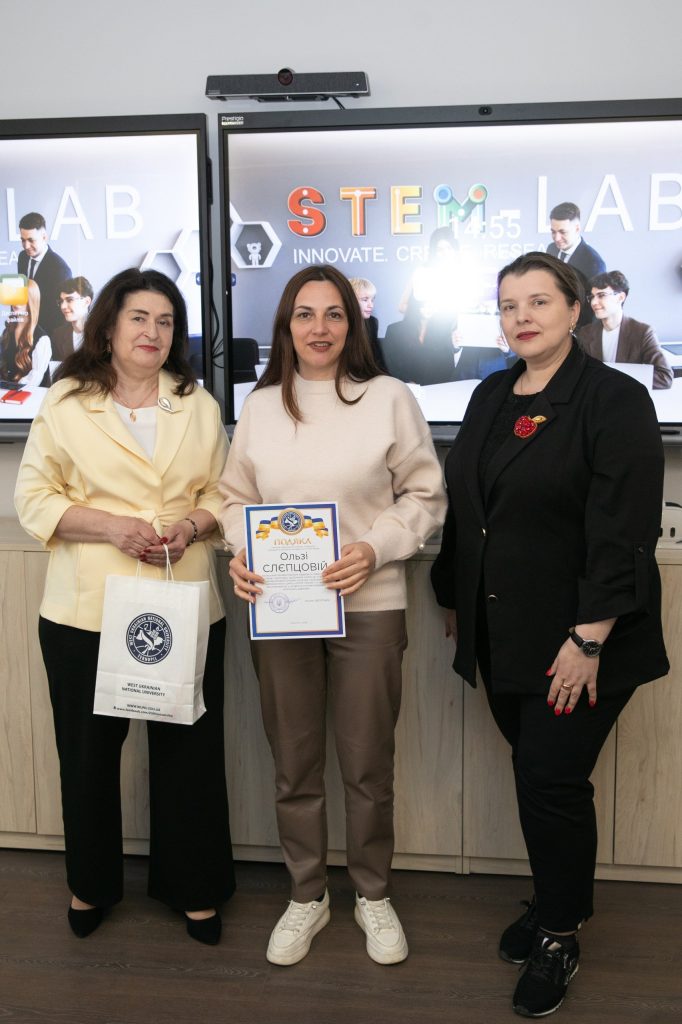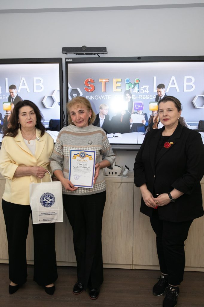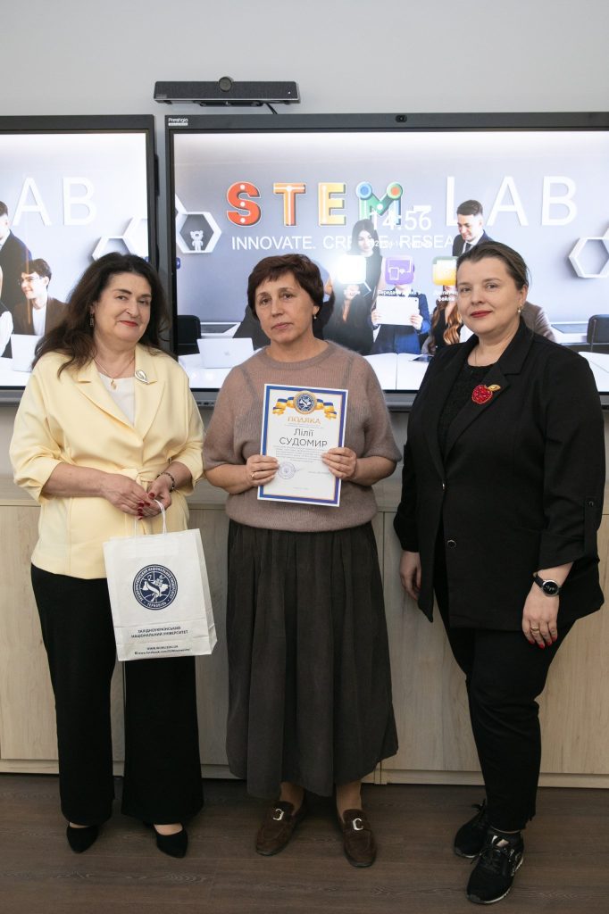 До привітань долучилися начальник науково-дослідної частини ЗУНУ, професор Віта Семанюк, та завідувач кафедри економічної кібернетики та інформатики, професор Леся Буяк. Вони висловили щиру вдячність педагогам за високий рівень підготовки учнів, відданість своїй справі та щоденну працю над розвитком обдарованої молоді, а також відзначили важливу роль наставників у формуванні дослідницького мислення й підтримці перших наукових кроків школярів. У межах заходу вчителям було урочисто вручено подяки ректора Західноукраїнського національного університету, що стало знаком визнання їхнього внеску та підкреслило важливість співпраці між закладами освіти у розвитку STEM-напряму.