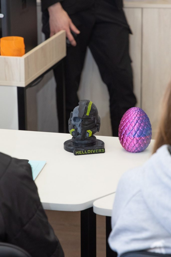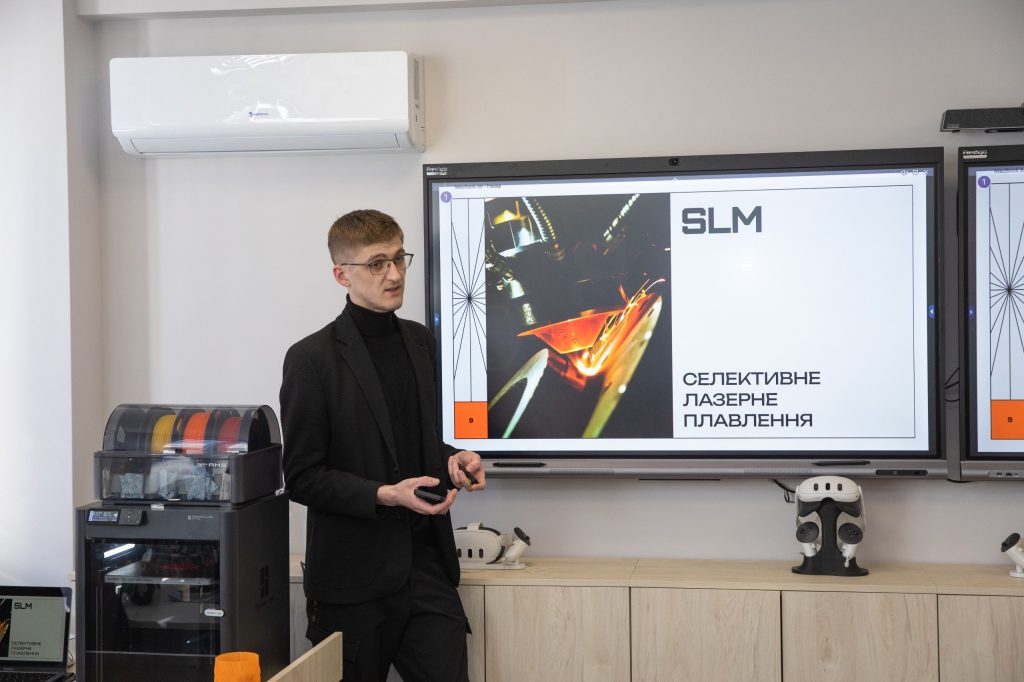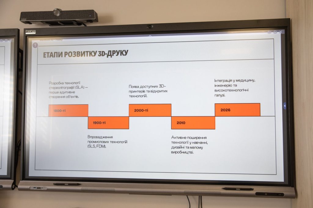 Особливу увагу було приділено практичним аспектам роботи з технологією: створенню цифрових 3D-моделей, підготовці файлів до друку, налаштуванню обладнання, аналізу типових помилок і дефектів. Учасники переконалися, що якість 3D-друку визначається не лише технічними можливостями, а й точністю налаштувань, калібруванням обладнання та розумінням механіки процесу. Саме ці чинники перетворюють цифрову модель на якісний фізичний об’єкт. Практична частина заняття включала демонстрацію роботи 3D-принтера, аналіз надрукованих моделей та обговорення їх застосування в реальних умовах – від повсякденних рішень до складних інженерних задач.